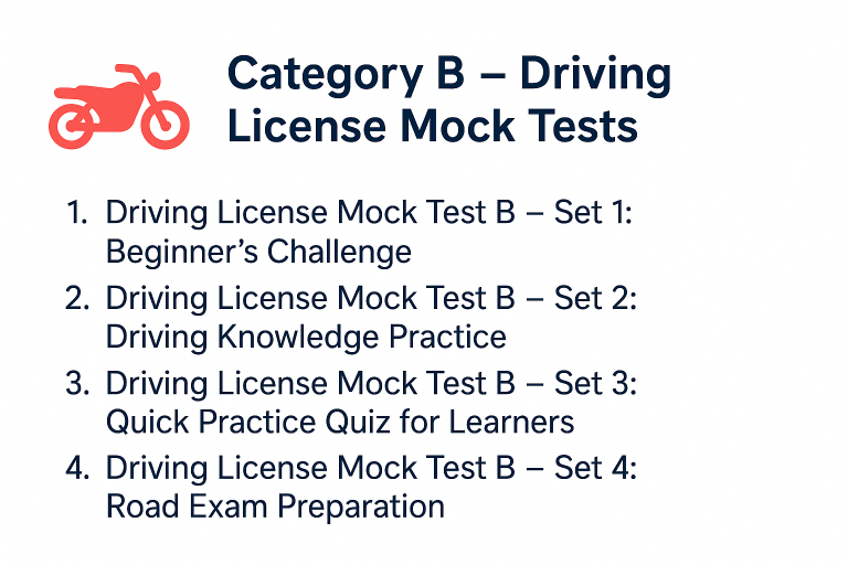 Driving License Mock Test B – Set 1: Real Exam Practice Questions